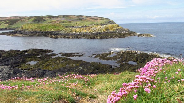 Today was not a day to rush, the distances involved weren't great although we did have a mountain to get over later on. As such we felt relaxed and happy to take side roads and explore. From Ramsey we headed out to the main A5 but almost immediately took a small side road following NCN route 3 which headed back to the rocky coastline overlooking Bay ny Carrickey to Port St Mary. We stopped awhile to enjoy the view, improved now the rain had more or less stopped.