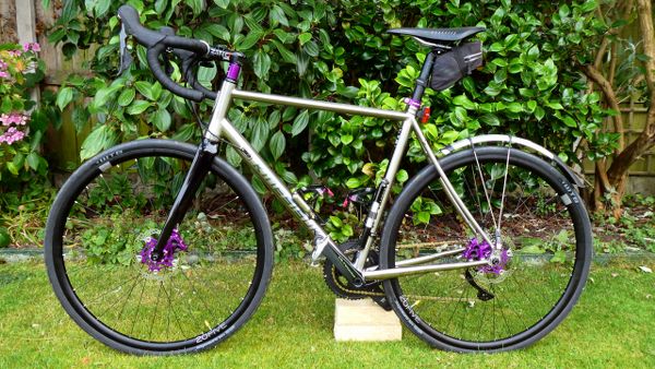 2013. Enigma Etape. This is comfort on wheels, with carbon forks and Shimano Durace C35 wheels (now replaced with handbuilt Pacenti rimmed wheels with rather sexy Hope hubs), built to ride long miles but also light enough up those hills. It fulfils a long held ambition to go down the titanium route